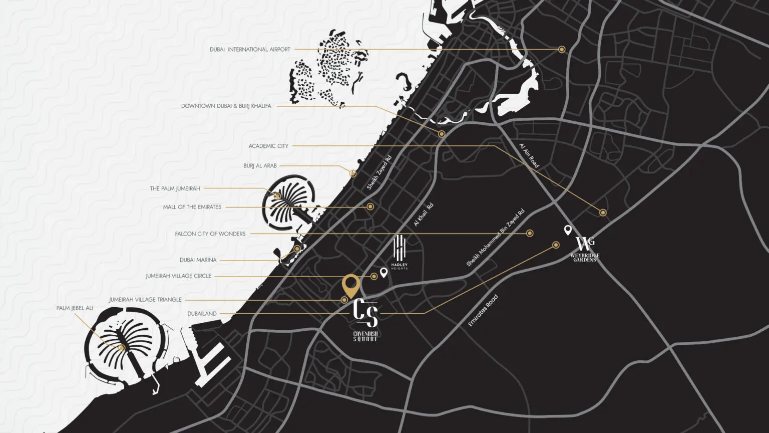 The façade enjoys a strategic location within the vibrant Jumeirah Village Triangle (JVT) community, one of Dubai’s most sought-after residential neighbourhoods. The development’s prime positioning ensures that residents are connected to all of the city’s major attractions, making it an ideal choice for those seeking both convenience and luxury. Major highways and transportation hubs are easily accessible, ensuring that residents can quickly travel to any part of the city.