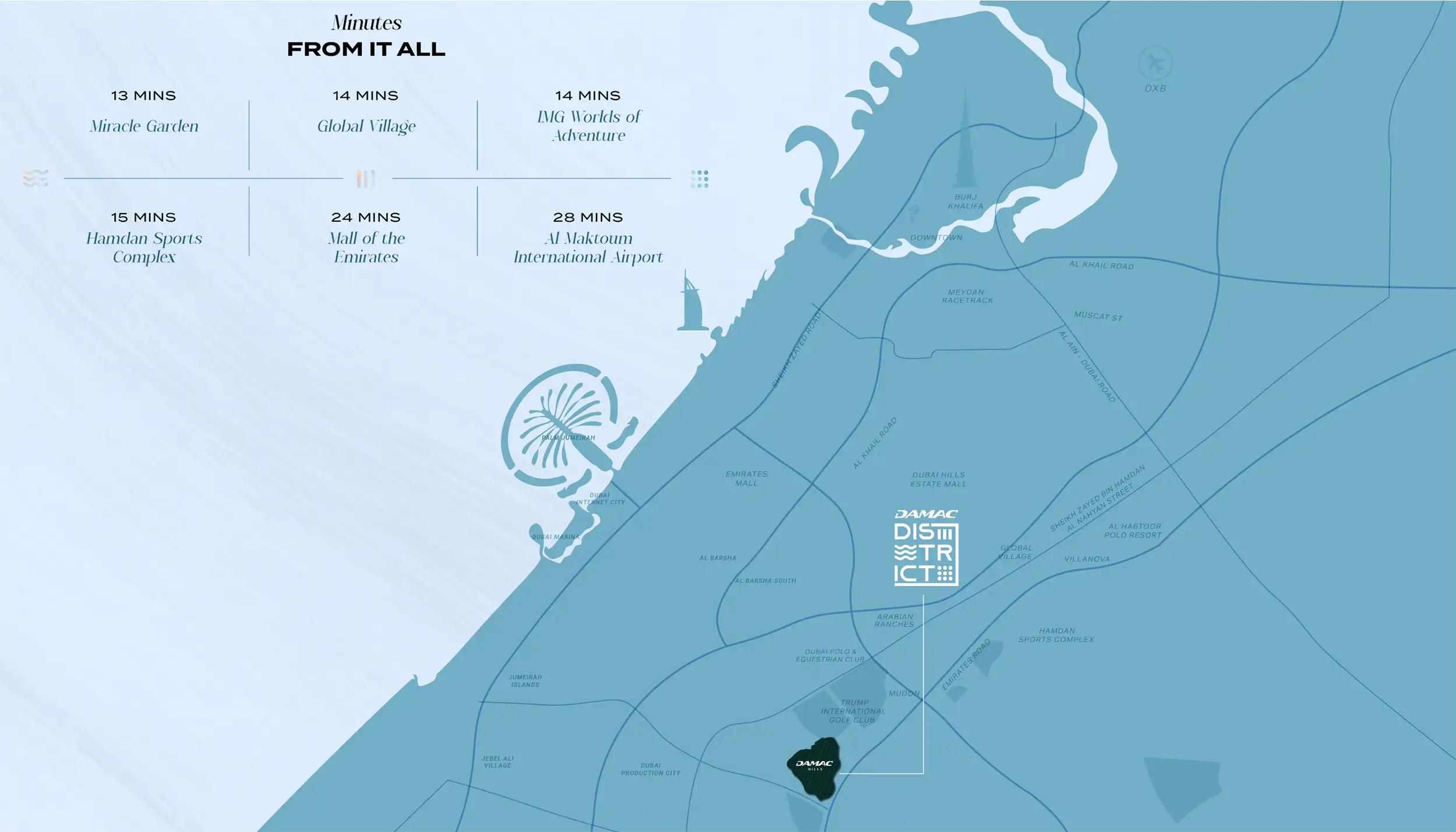 Essentially, the District is a futuristic, as it combines luxury homes, global offices, and lifestyle-oriented options on the backdrop of the well-developed Damac Hills community. It’s a modern style in architecture with simple lines, open spaces, and dramatic facades. The apartments are built to make the most of the natural light, whereas the office buildings are built with effective layout to assist professional creativity and productivity. The spatial planning of the area will be premised on the fact that those who work here, would like to be professionals, and would like to be able to have their work and leisure in the same area, so close to each other are the entrepreneurs, executives and the families who would like everything around to be close to them.