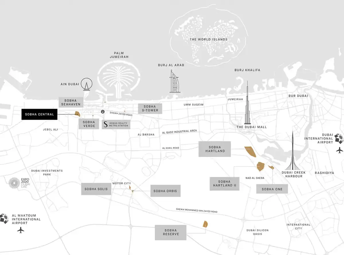 Located at one of the busiest corridors in the Middle East - the Sheikh Zayed Road and places one in the midst of the most desirable axis in the city. Not with standing a conscious extent of distancing oneself of the noise. The benefits associated with the development include direct, constructed, connectivity: the podium has a unique fly-out bridge, multiple overserved traffic lanes, and a ramp-in leading to easy arrivals and departures. Although, the facade is close enough to Jebel Ali Metro Station yet still with minutes of reach of the Dubai Marina, Downtown and DIFC. The future-oriented travel times will be convenient as the DXB International Airport and new Al Maktoum International Airport are the best move to assert the strategic location of the project in both living and working.